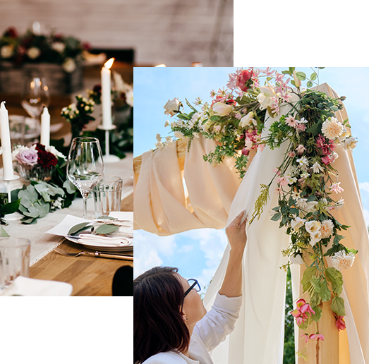 When it comes to the food, we work with carefully selected caterers to provide a culinary journey. Whether you want local delicacies or international dishes, we customize the menu according to your wishes. With our extensive knowledge and close relationships with suppliers, you can rest assured that your wedding will be a memorable experience, personalized to your wishes.